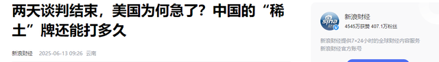 新浪财经-两天谈判结束,美国为何急了?中国的“稀土”牌还能打多久