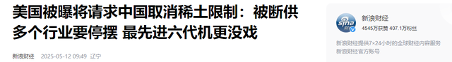 新浪财经-美国被曝将请求中国取消稀土限制:被断供多个行业要停摆 最先进六代机更没戏